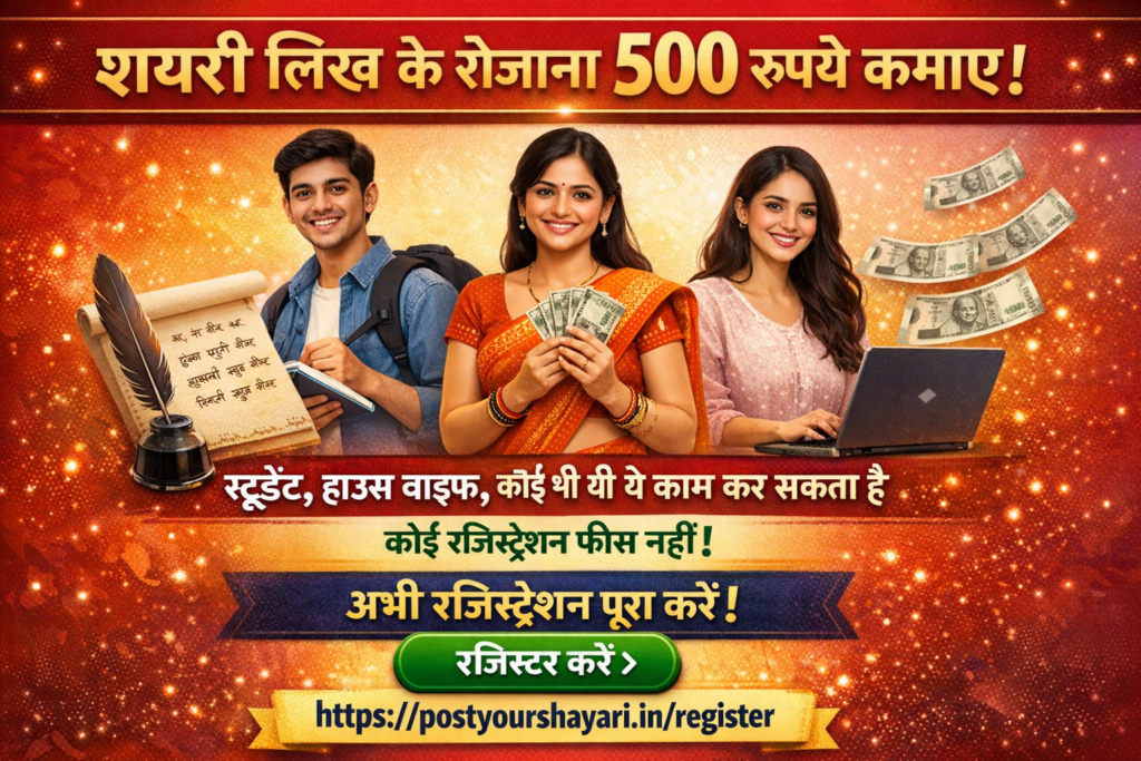 अब आप यहां शायरी पोस्ट करें, कमेंट करें, रेफरल लिंक रिवॉर्ड से रोजाना पैसा कमाएं।